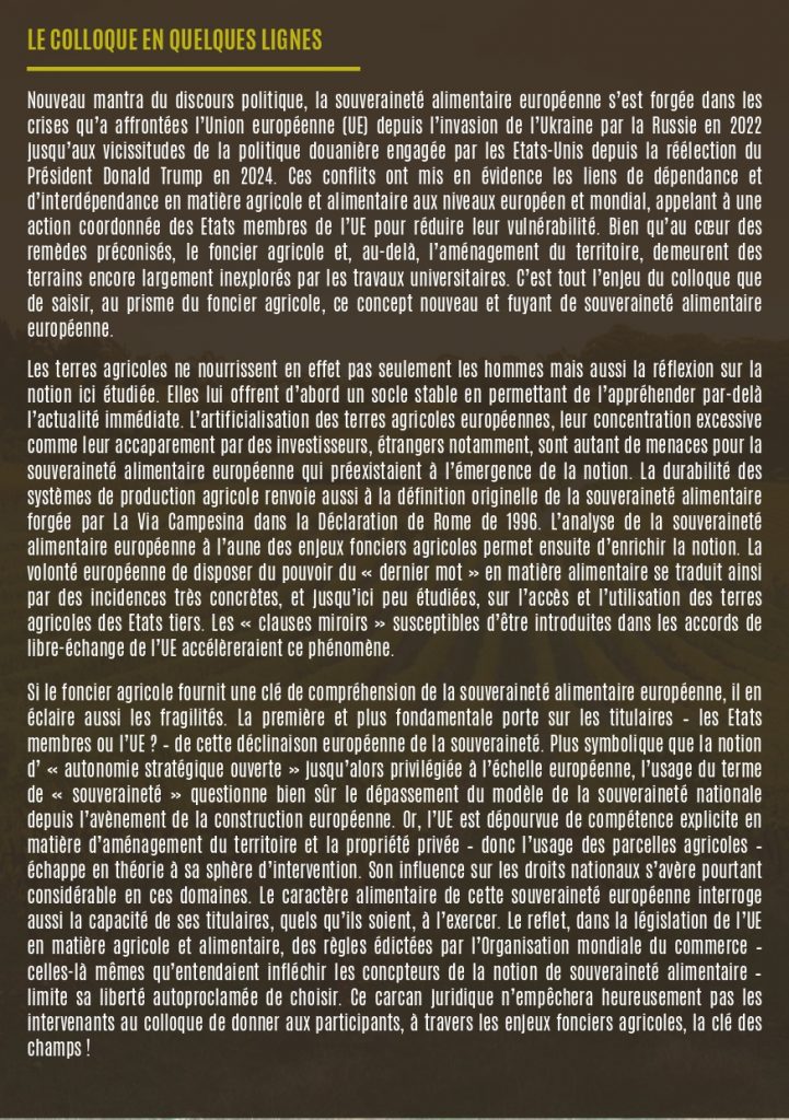 Accès à la terre, accaparement foncier, renouvellement des générations, sécurité alimentaire… Dans cette interview, Jean-Victor Maublanc, directeur scientifique du colloque, met en lumière les tensions majeures qui traversent aujourd’hui le monde agricole. Penser la souveraineté alimentaire sans interroger les règles encadrant le foncier revient à négliger l’un des leviers les plus structurants de l’avenir agricole européen.